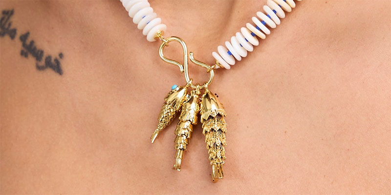 This whimsical and playful trend smacks of the Mediterranean Sea, sunshine, outdoor leisure time, and coastal living. It seems easiest to wear as an accessory like a necklace or earrings. Fish tees, sweatshirts, swimwear, shorts, tops and dresses worn as beach and beach-town-attire make a lot of sense too. That said, if you want to wear the trend inland, why not?! Have fun with it, your way.