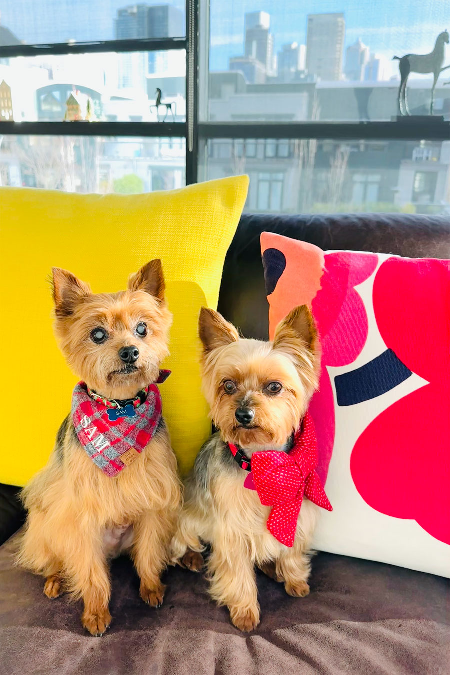 Christmas and New Year will be extra special in our newly remodeled loft. The decorations are up! Our elegant and cerebral little Sam, and beautiful and feisty tiny Jo are ready for action. Christmas morning is a hyperactive present opening and squeaky toy frenzy, which can’t come soon enough for our Yorkies. Extra treats are welcome too.