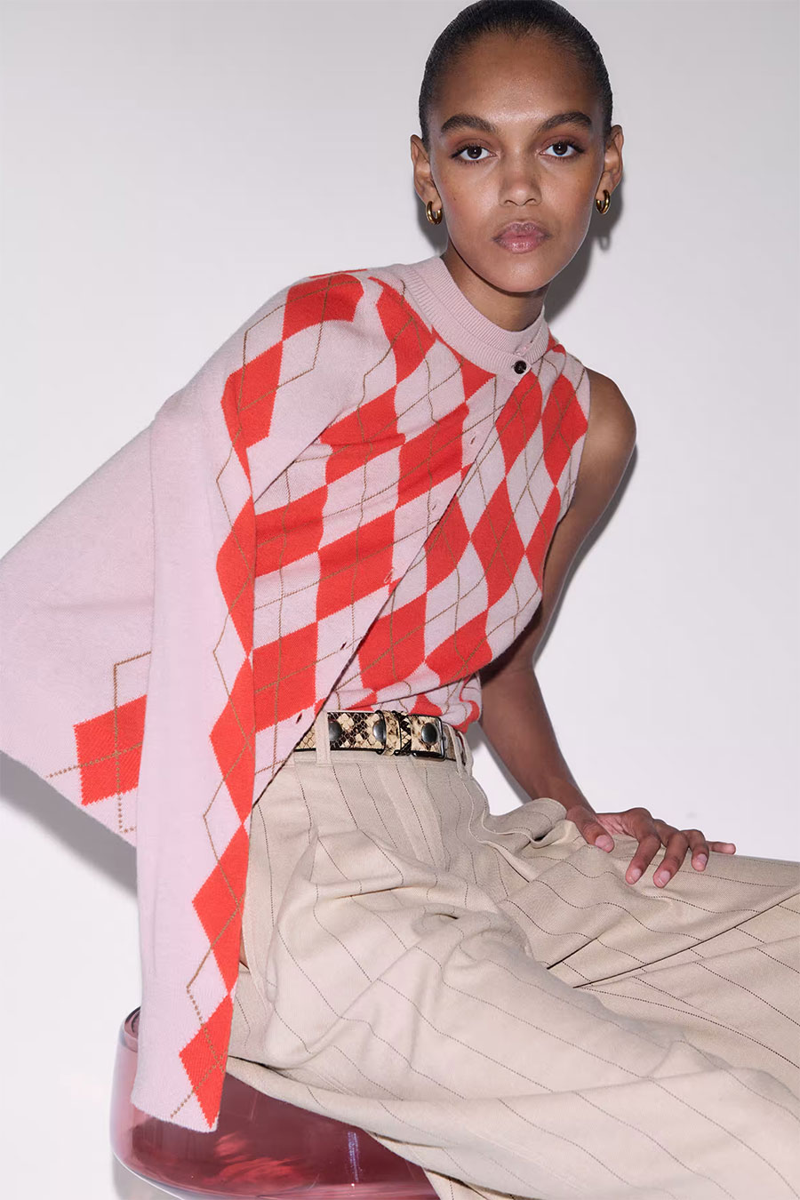 If you bat for Team Argyle like I do, you might be inspired by some of these outfit combinations. An argyle is a classic diamond-shaped design made up of overlapping or interlocking lozenges, often arranged in diagonal rows. It usually includes thin lines that crisscross the diamonds for extra detail. Argyles can be neutral or non-neutral, and large or small in scale. Knitwear and socks are popular vehicles for the pattern. Scarves, hats and hosiery too.