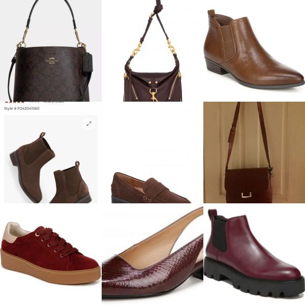 Footwear/bags/scarves - burgundy and dark brown