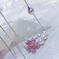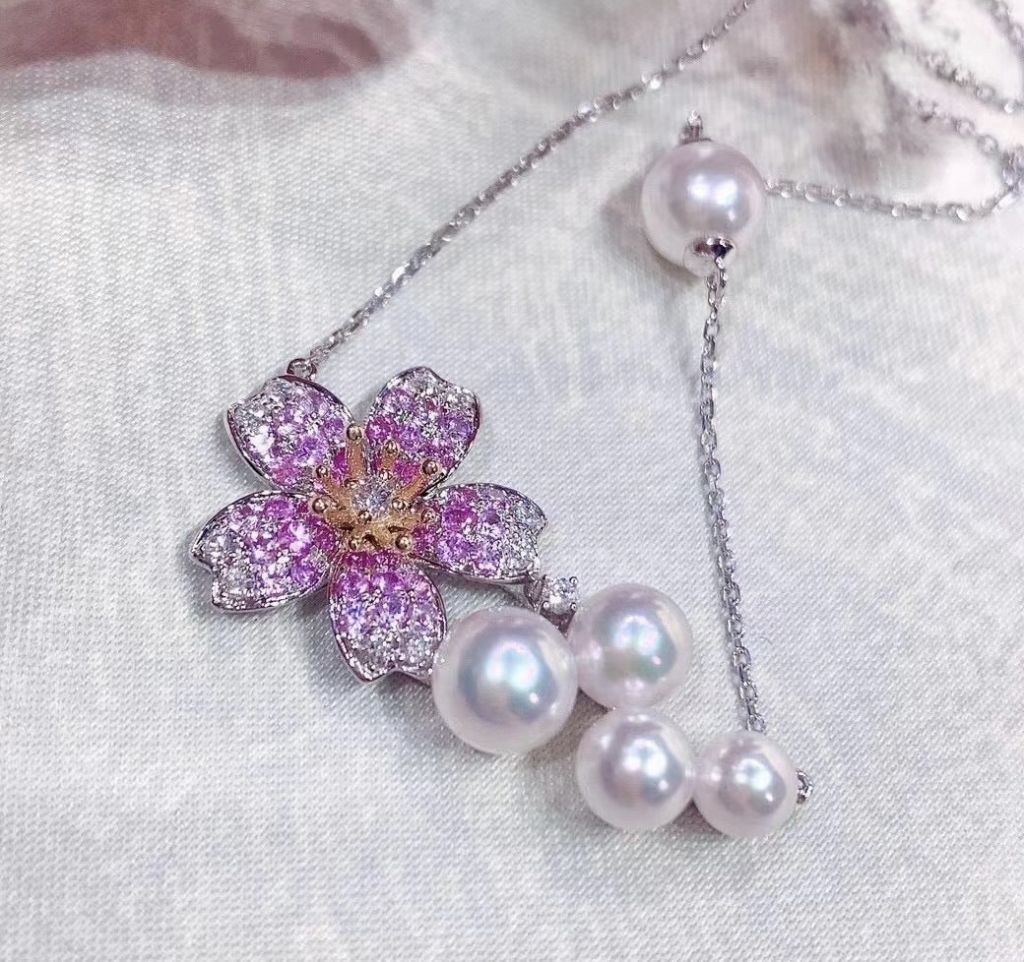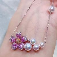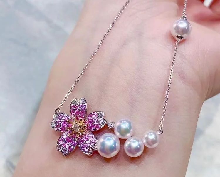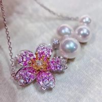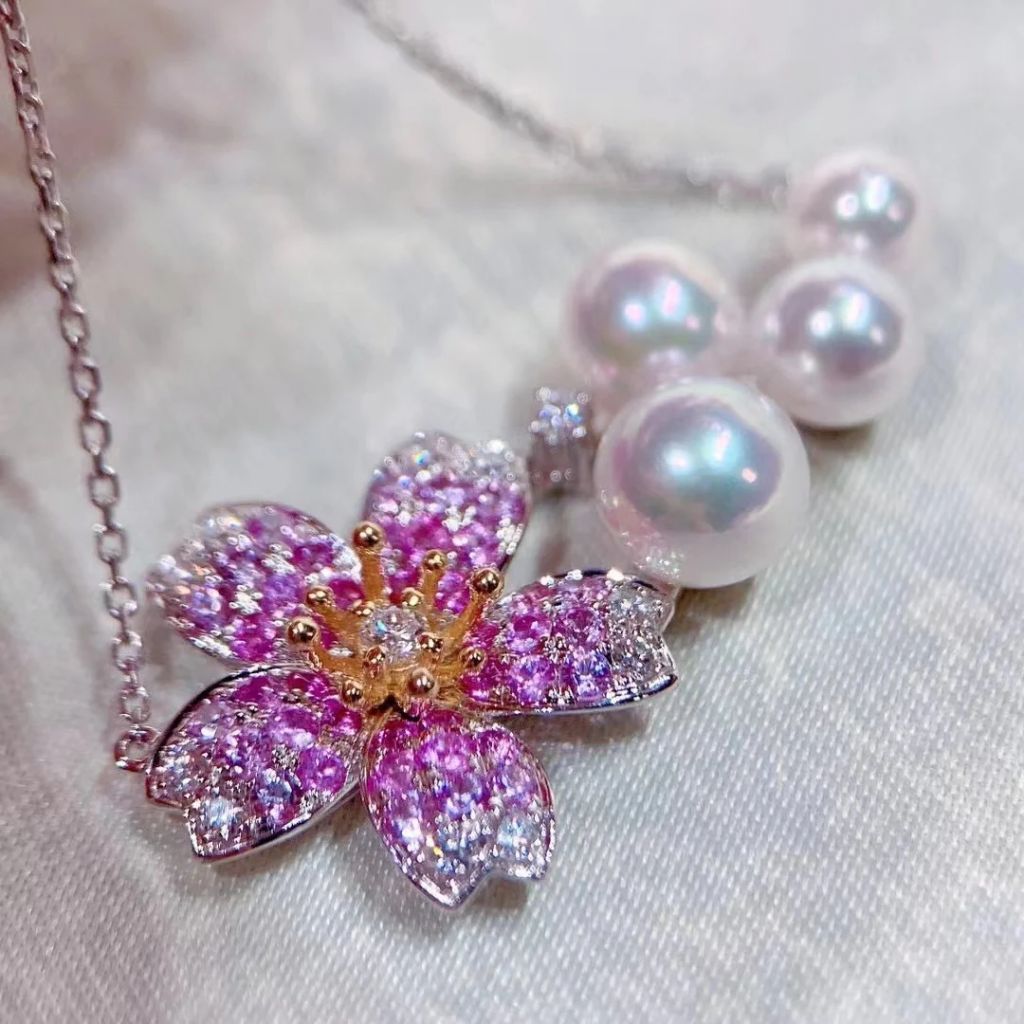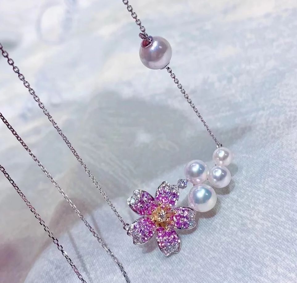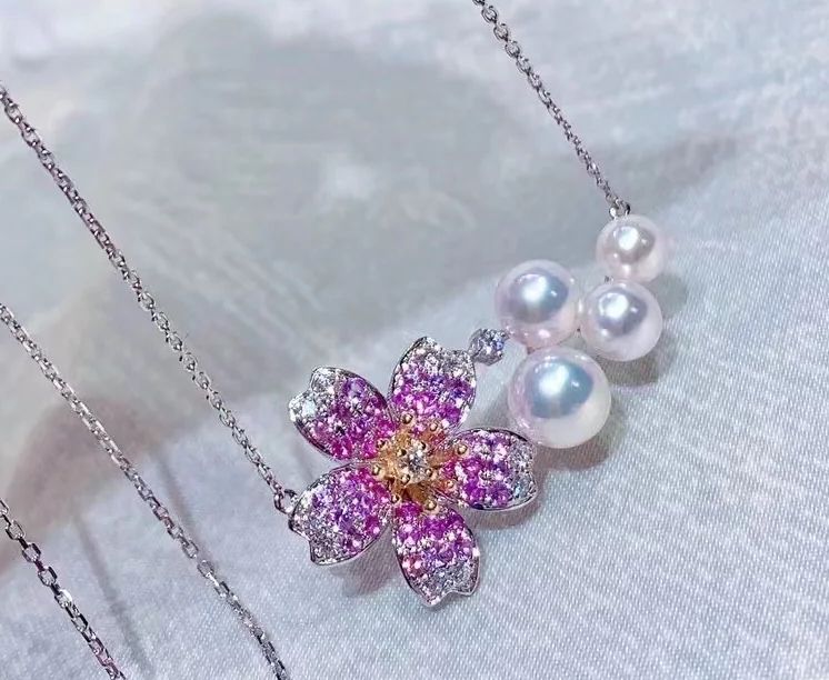Pink Sapphire and Akoya Pearl Necklace