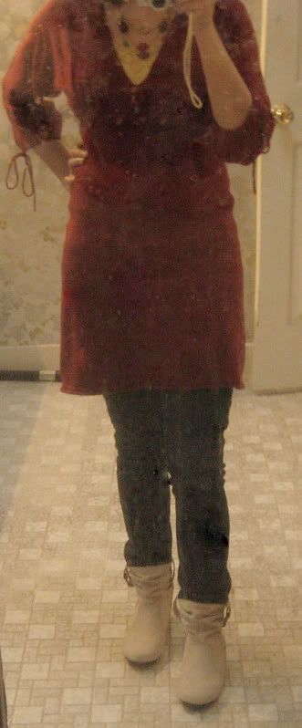 Cream ankle slouch boots. I know Angie is going to have an apoplexy at me even thinking of swapping these, but they are just a bit too western for me and I haven't been able to make them work the way I intended them to (6.5):