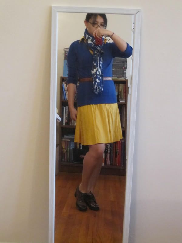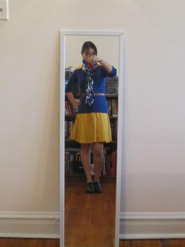 what do y'all think? i can't help reaching for the scarf every time i put together an outfit with this sweater -- they're the perfect matching shade of blue! anyway, thanks for indulging me in this insanely late challenge, and as always, your feedback is appreciated!