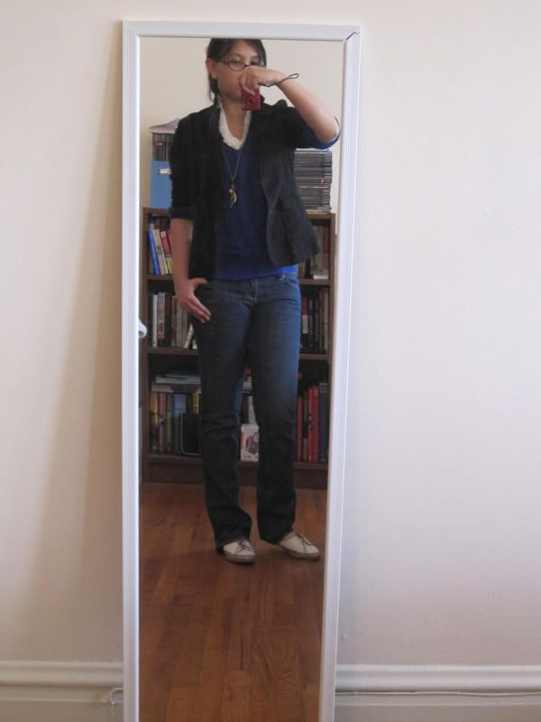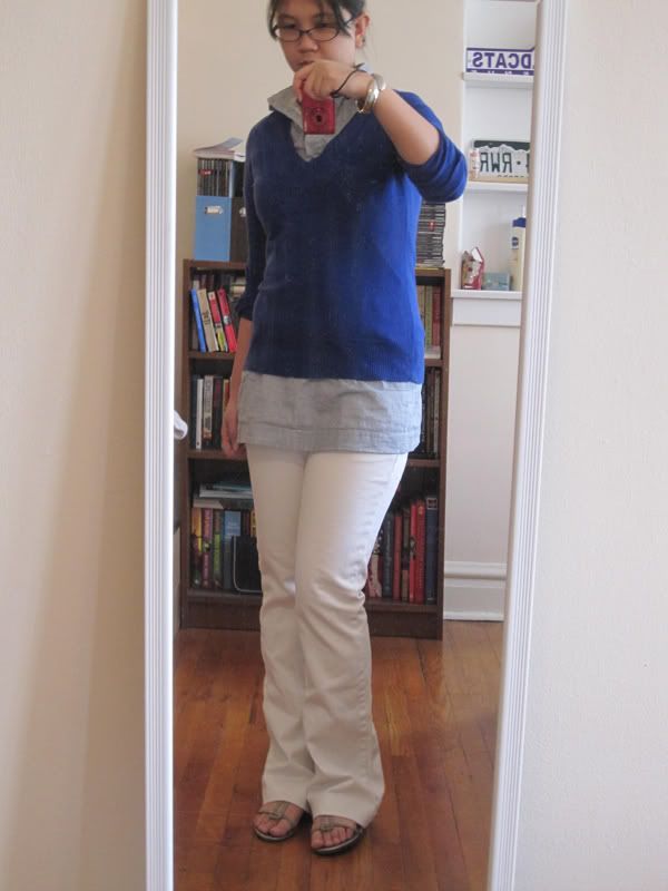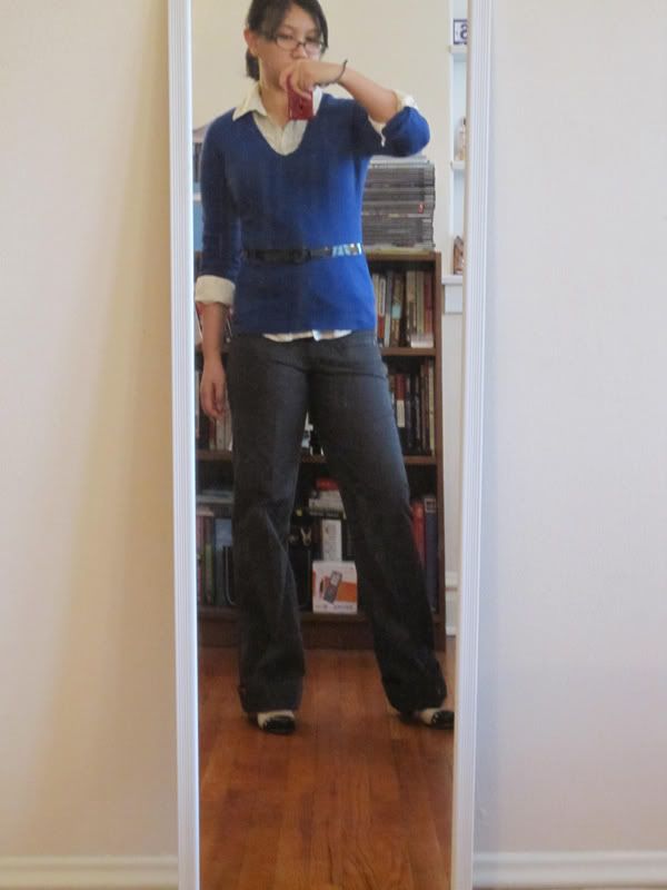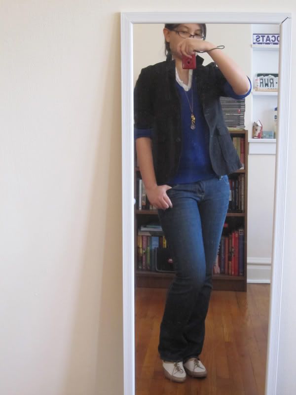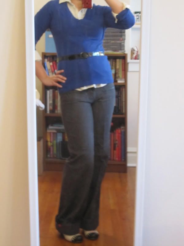 i used to have way more v-neck sweaters, but tossed most of them out, save for this one in a beautiful cobalt blue -- from the gap outlet, i think.