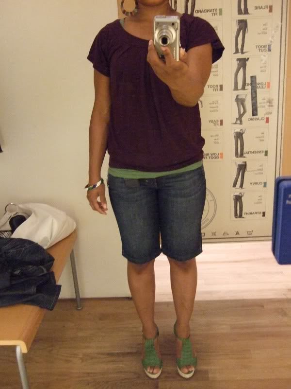 I went to Gap on Friday to try on some Bermuda shorts and they had a sale. All shorts were 25.00 for Memorial Day. So I tried on a couple of pair. I have always been a little hesitant about berumuda shorts, because I feel my legs are short and stumpy and I didn't want to look out of date and unhip.