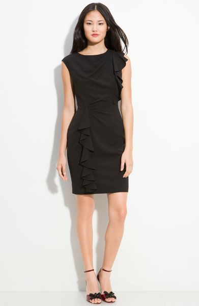 He said the ruffles clash with the blazer and the dress should not be worn with a blazer. I should also note my blazer is a tad small so I keep it unbuttoned. The black material of the dress and the blazer match, but obviously are not perfect matches because they are separates.
