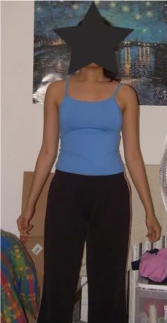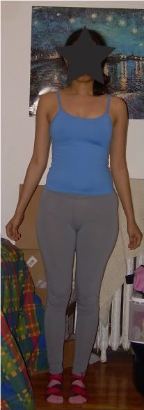 Just thought I'd make sure...I think I'm an hourglass with pear tendencies, though I did an online test once and got inverted triangle (that has to be wrong). I actually first took this pic wearing leggings but the flash resulted in a picture in which you could see the color of my underwear so I used these cropped (horrible length) active pants instead...