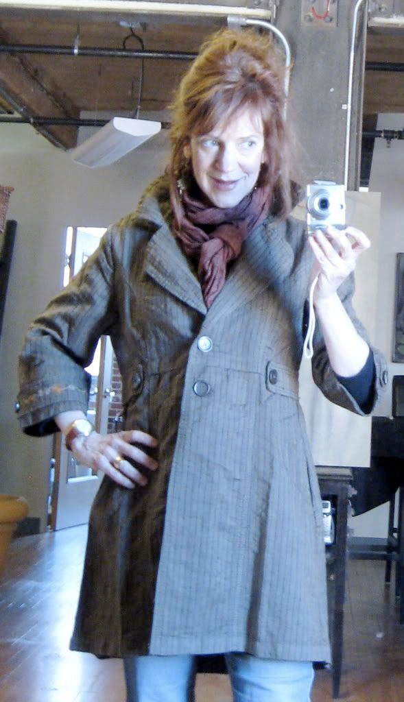 I am sorry if this a repeat for those who commented but I am still undecided on this one, I am tending toward keeping it. It is intentionally styled to not be fitted, It has a funky look which I like and would be worn casually. It is a small which is the smallest it came in. I got mixed reviews on former thread (most liked but thought it too big.) some thought ot was fine as is. I think that it is the cut of the jacket, it does not feel too big. I have shown multiple views. What do you think? Thanks Angie!!