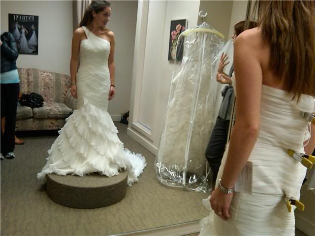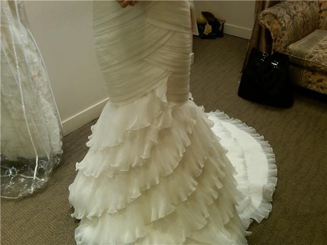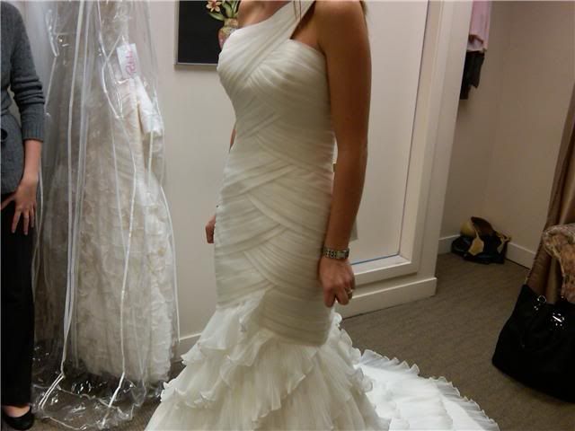 I have fallen in love with this mermaid wedding dress, but am unsure if it is flattering on me. I need objective opinions!! I am also concerned that once it's hemmed it may lose the elongating effect, what do you think? I am 5'5'' and I am an inverted triangle, mostly, with very narrow hips, a larger bust and shoulders. I really appreciate any suggestions!