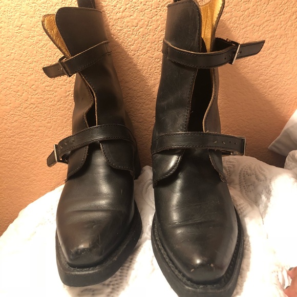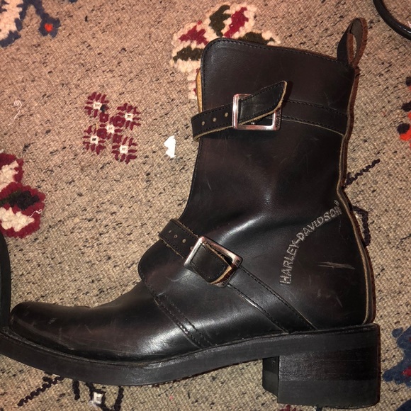 Hey guys - hoping you can help me locate/put a name to this pair of boots I saw the other day. A woman was wearing these absolutely perfect-looking chelsea boots that I found out were Harley Davidson; there was white stitching on the rear/side heel saying "Harley-Davidson" and they looked a lot like the HD boots in the attached photo. They had the same square toe - not too dramatic - and that same curved stitching on the side. The ones I saw were chelsea boots - black - with the usual black stretchy side paneling. No buckles, no laces, just like regular chelsea boots. Can anyone help me find these?! Please and thank you xx