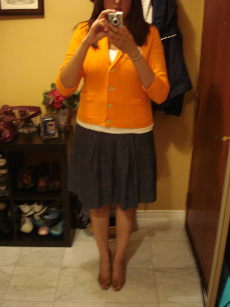 I really really love my new cashmere shawl cardigan from Jcrew. I bought it in this colour (Mandarin Orange) and Geranium and they are just so lightweight and flattering and the colours are so nice!
