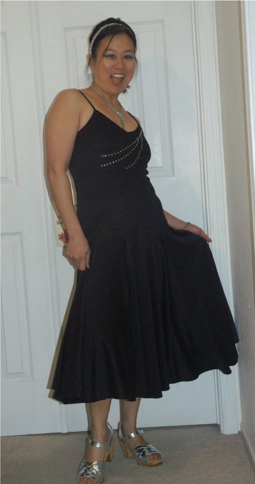 Thanks for all your suggestions on my hair, makeup, and outfit for the 70s disco dinner/dance/auction I went to last night. It was a blast! We had fun grooving to Abba, Village People, Parliament, Bee Gees, and other classics. My feet lasted for the 5 hours we were there -- no blisters, yay.