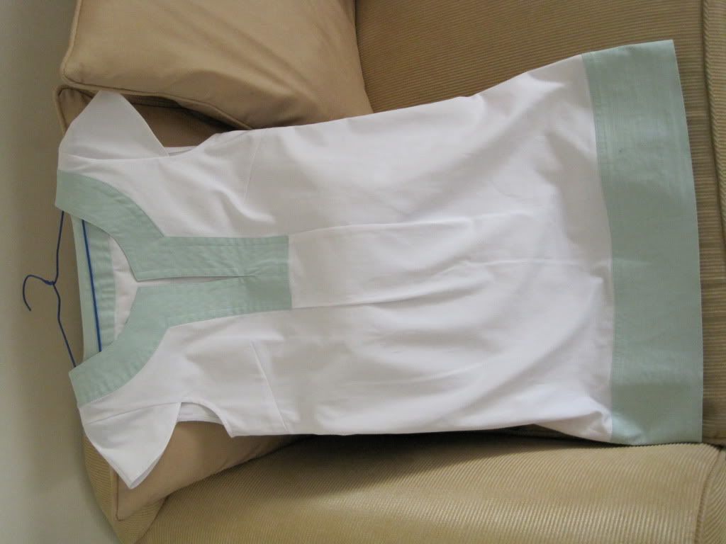 Another dress that I had made at the tailors but not sure about. I got it made up in two colours the first is lime green with white trim and I love that one (I think) and the second as you will see here. I can't help but feel it looks a bit like a nurses uniform due to the pastel shades. My husband said it could work with the right accessories but I have no idea what that would be?! It is quite a loose fitting dress and I would prefer to wear with flats to be comfy, any ideas? or should I just accept this was an error of judgement in the fabric shop and move on? it cost around $45 to have made.