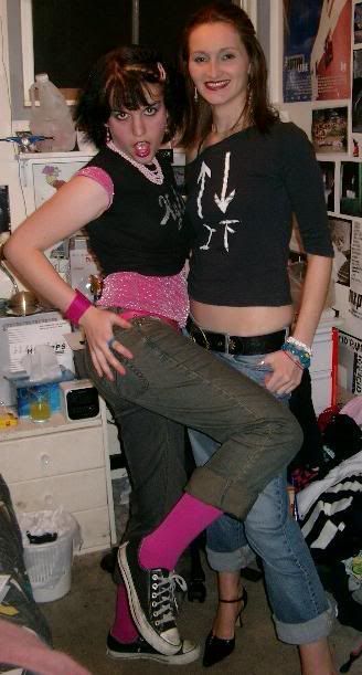 I think we have the last-minute "crisis" under control.... they've got tights and armbands and neon colored oversized tees they hacked with a knife for an ala flashdance kinda look.... unfortunately no gawdy plastic jewelry because I tossed all that ages ago.... and no powder blue eye-shadow in the house but youngest DD doesn't like make-up anyway. She has a sideways pony-tail idea in mind.