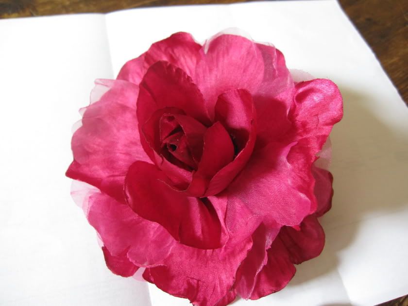There were other options: the classic silk came in a bright cobalt blue, a true red, and a deep teal. There was also another fuchsia one that had every petal outlined in black tipping. I passed on that one, in spite of the black accents, because I though it would need an edgy outfit behind it not to appear old-ladyish.