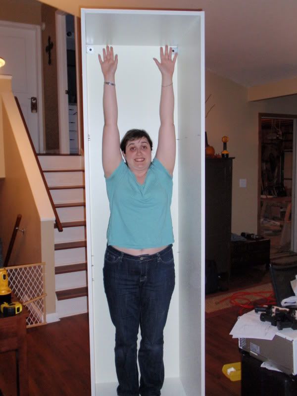 Me, pre-pregnancy, playing in our new cabinets (not the most flattering of pictures but...)