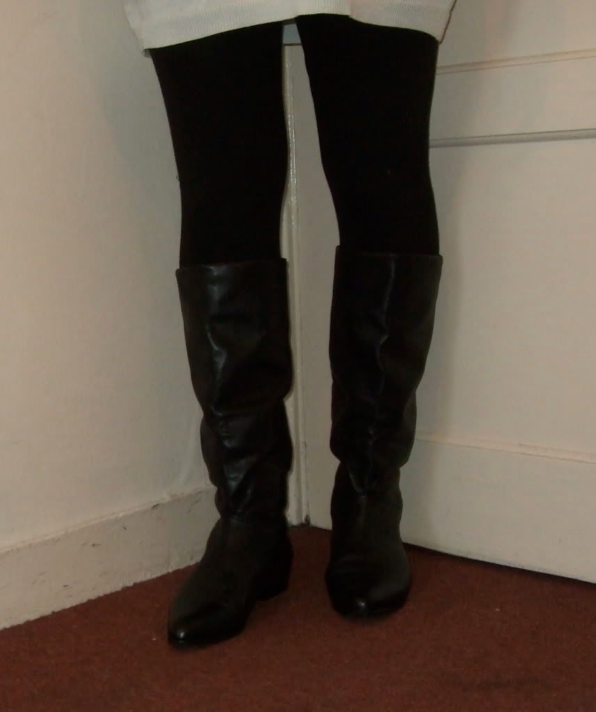 I didn't have any rubber bands at home, instead I just took two bits of string, sort of, slouched the boots and tied the bands from the heel up over the slouched "shaft". Does this make any sense?