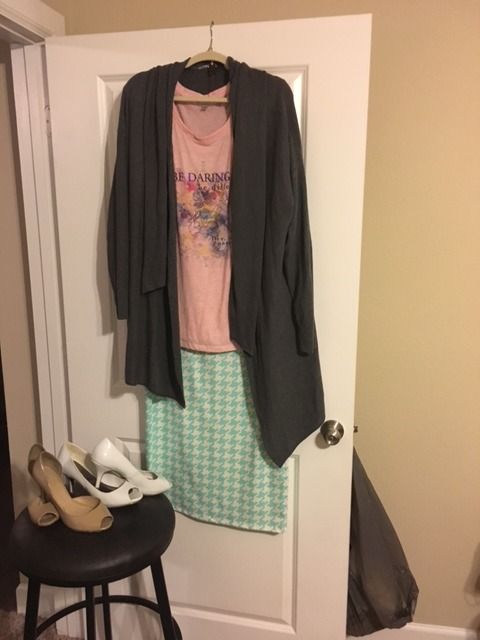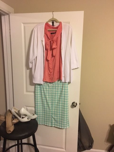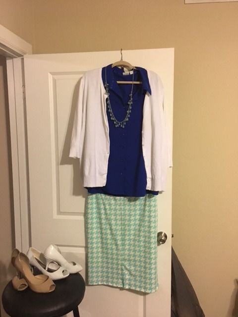I may be warming up to the idea of the head-to-toe mint (or sea green or jade or whatever you call that color I do think there's something to the lighting about that because if I lay the skirt and sweater on the bed and just look at them, the two greens are barely a shade off but in the photos the sweater looks a good bit darker. My leading theory is that the skirt reflects the light from the flash more than the sweater does).