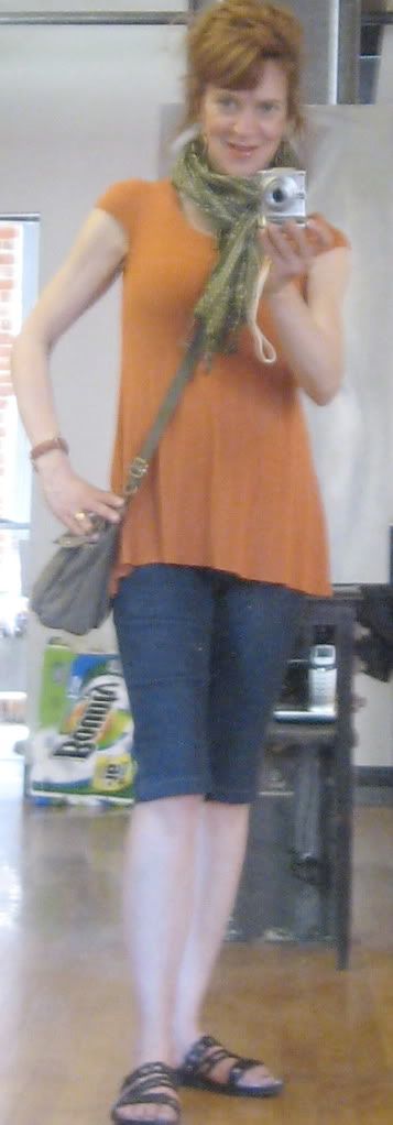 Kari, I believe someone said the leggings dress still showed my waist. Actually it may have been you who said you could still see a hint of where it was at. I get the sense that's not what Angie is after. And others suggested the outfit would look better if I belted the dress, so I'm not sure going the other direction would be the best look for me. Thoughts?