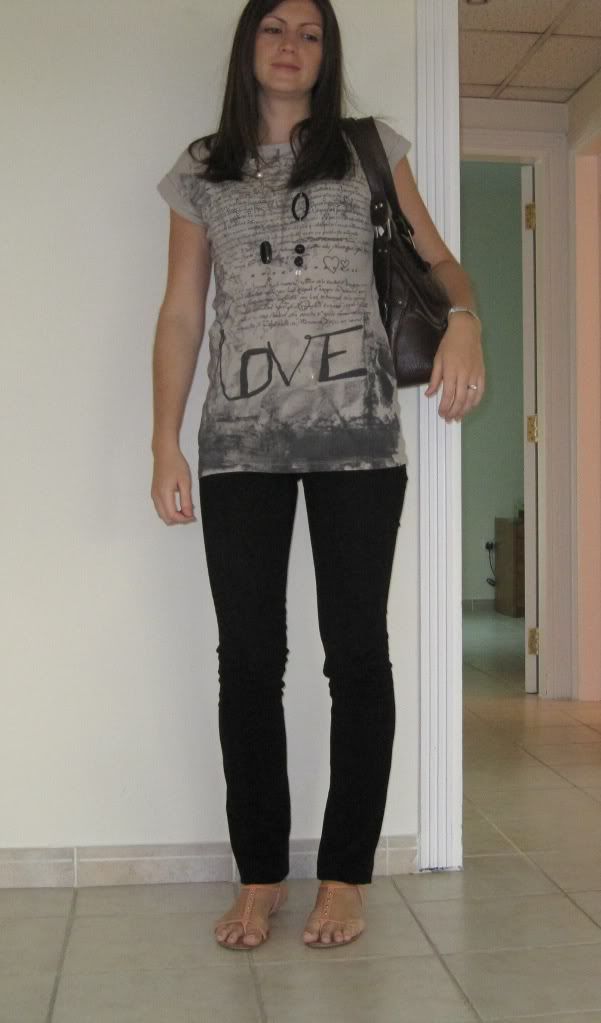 I have had a pair of black skinnies at the back of my wardrobe which I haven't worn in ages. I pulled them out and wore them twice in the last week. The first look is a loose attempt at one of Angie flop proof motg outfits, altered a bit for the climate here. Both outfits were basically worn to take my daughter to play dates. Any suggestions on how to improve would be greatly appreciated, I know I desperately need a new bag but it is on the wish list for my first pay cheque!