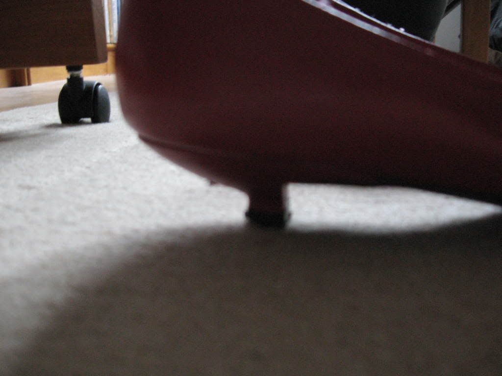 These are pretty comfy but somehow I just don't like how they look on my foot. They are a true red--neither tomatoey or bluish. I like the 80's feel to them though.