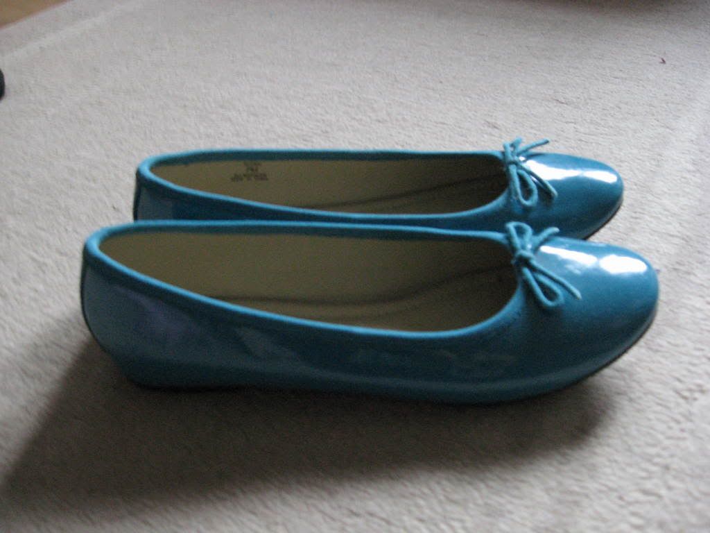 Turquoise patent Steve Madden flats, 7 (fit like a 6.5):