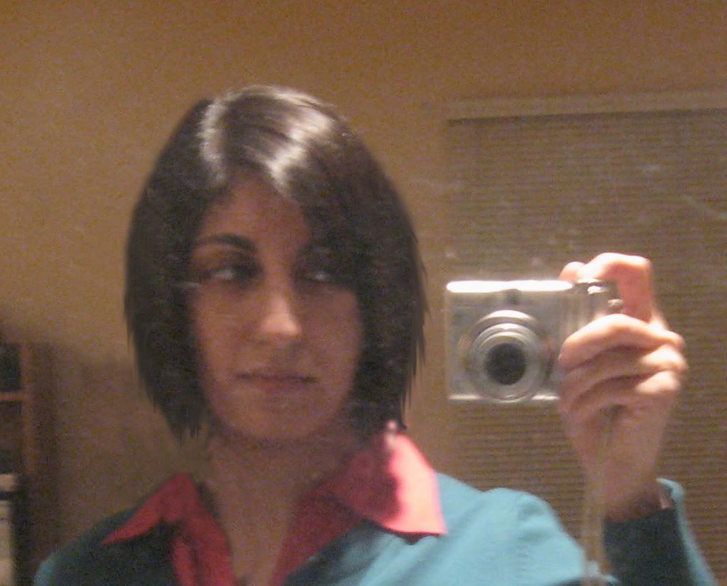 I noticed yesterday when putting my hair up in a ponytail that my layers actually sort of form a graduated bob (at least on one side...the other is too long). So with a bit of sloppy photoshopping I created this: