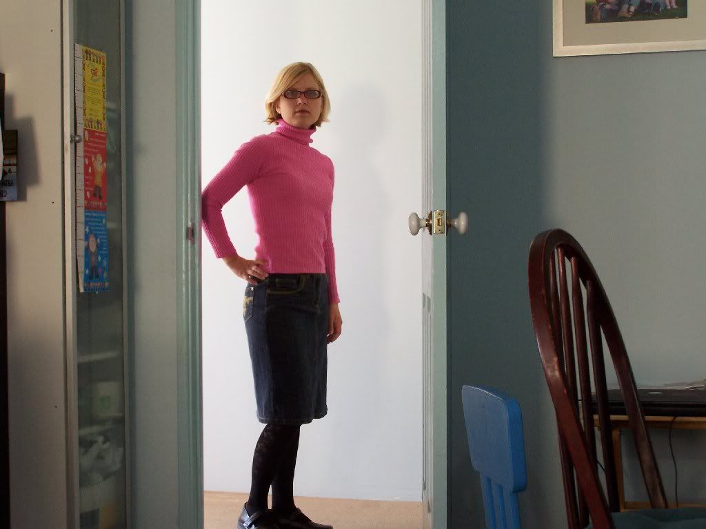 Since your purple and pink are pretty similar in intensity, I actually think you could get a much more balanced look if your purple top was shorter and your pink sweater was a cardigan or deep V neck [so there wasn't so much of it!].