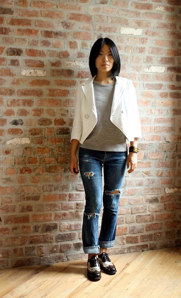 I was hoping to get them for about $30 shipped, which is way more than what I usually pay for used shoes. Also, I wanted an inexpensive, used pair just to see how I could make brogues fit into my wardrobe. I was outbid by about $3 and I realized I was pretty bummed, more than I thought I would be. I couldn't stop thinking about those shoes and they popped up again a few days later since they were apparently too small for the person who bought it. Now that person is selling them for a "buy it now" price of $30 even though I know she paid only $23 for them. For whatever silly reason, I really want these shoes now. But I am unable to reason myself into spending $30 + $8.99 on used shoes. It's not like they are docs or la canadiennes. The description does mention they are leather uppers.