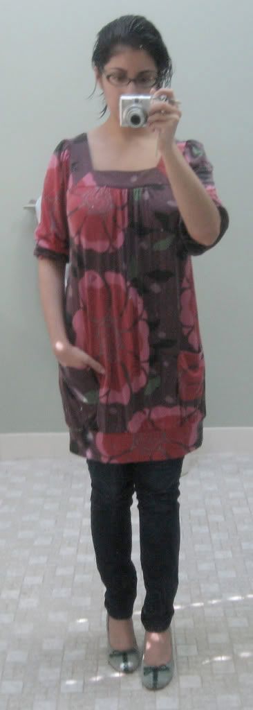 Blush tunic. It's a size XL so I think it was actually from the kid's department. The top half is unfortunate for my big bust, but I loved the skirt part of it. I tried using a necklace to make a V but I think it will just have to be layered.