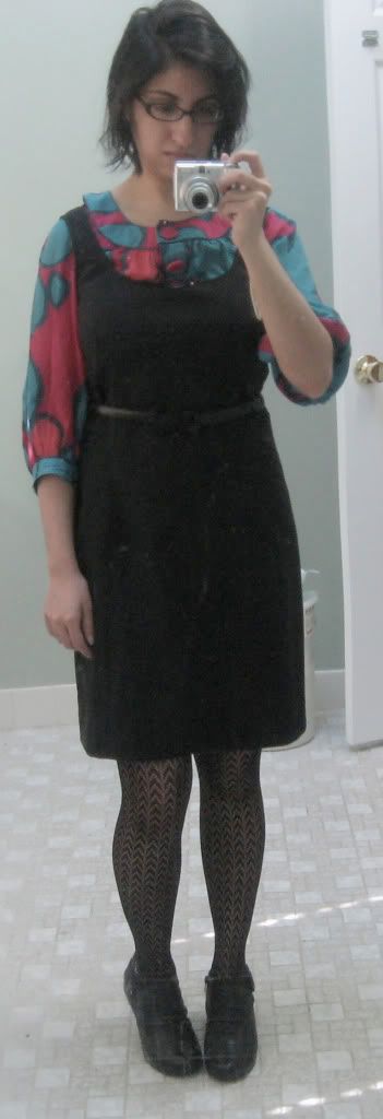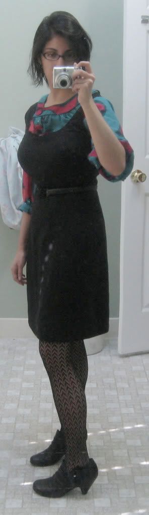 Angie brought one of her belts for me. It works here because it is the same color as the dress and it is adjustable. Also dresses are just easier to belt for me than separates. It's purely decorative here, not meant to cinch my waist. The dress is already fitted. I think it is too thin to use as a cinch belt.