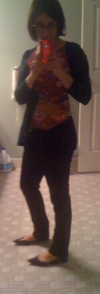 Yes it's true. After I made my return I went to browse the clearance section of the shoe department and found these. They are a 7.5, but they are actually more comfortable than my round toe flats because my feet don't come anywhere close to the tip of the shoe. I don't like pointy toe heels, but these flats just grabbed me--they reminded me of Audrey Hepburn--and then I noticed they were named after her :). They are black snake textured and very soft in texture. I got home and found out they come in a zillion colors, including a FAB turquoise. If they end up being comfy I will totally duplicate, maybe even triplicate in other colors. The best part is that they were $23, which meant I just paid $3 AND when I mentioned they were a little bit too big, the salesman added in a pair of heel grips for free. Maybe they won't make it to 8 hours but they should be fine for work when it gets warmer.