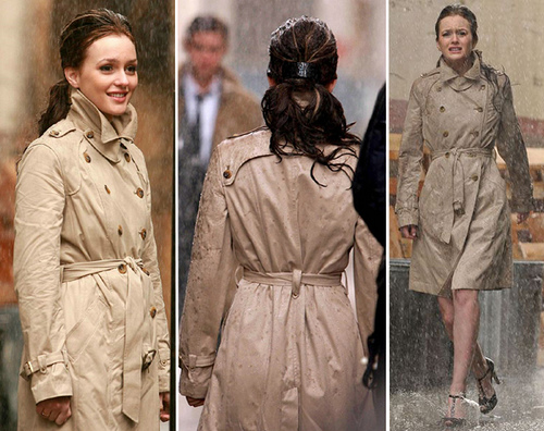 I have a 12 year old Jones New York rain coat that's water-resistant, khaki colored, but has a shawl collar that blends right into a hood (perfect for the rain). There are no visible buttons down the front -- although it is single-breasted, it's also full-length, a-lined, and has no belt.