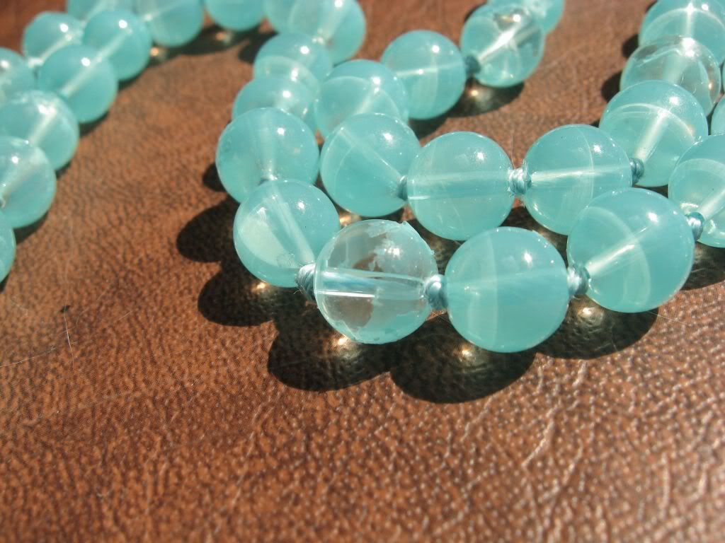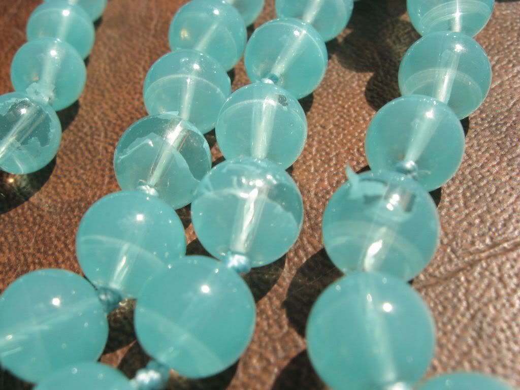 I am really disappointed with the turquoise glass beads from Nordstrom. They are actually clear, with some kind of plastic translucent turquoise coating. I have only worn them twice and the plastic is peeling off some of the beads! I'm returning mine as soon as I can get back to the store, but I thought I'd give a heads up to anyone who was thinking of picking up a strand.