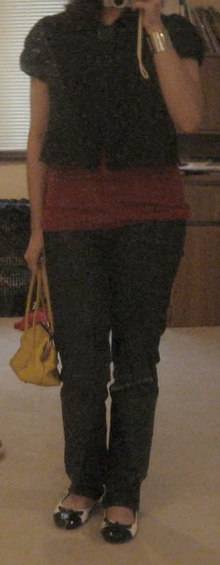 Shiny, These jeans are Gap. I tried to duplicate them, but they don't make this style anymore. I'm glad you approve of the color black on me. I am going to be on a hunt for a structured sort of cropped jacket now.