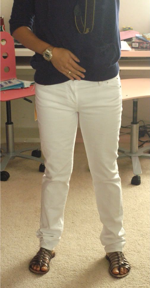 So I've tried on many, many pairs of white jeans and have generally disliked how I look in them. I feel like white is more unforgiving than dark denim.